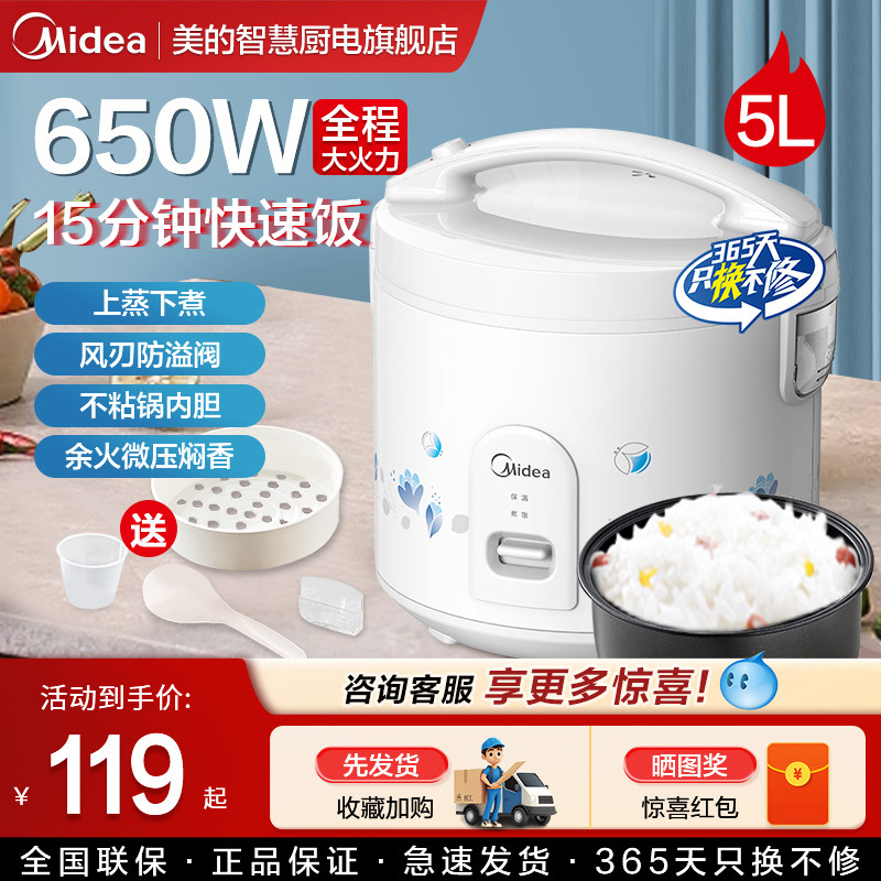美的电饭煲家用机械式大容量5L电饭锅老式3-4-8人官方旗舰店正品