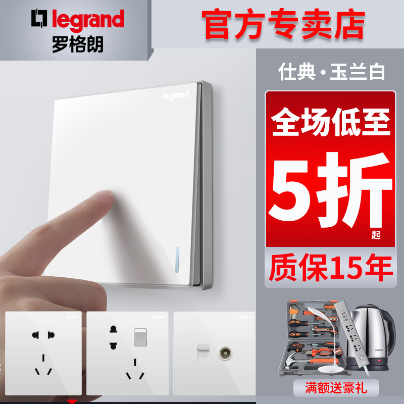 tcl罗格朗开关插座家用面板86型仕典玉兰白色一开单控斜五孔带usb