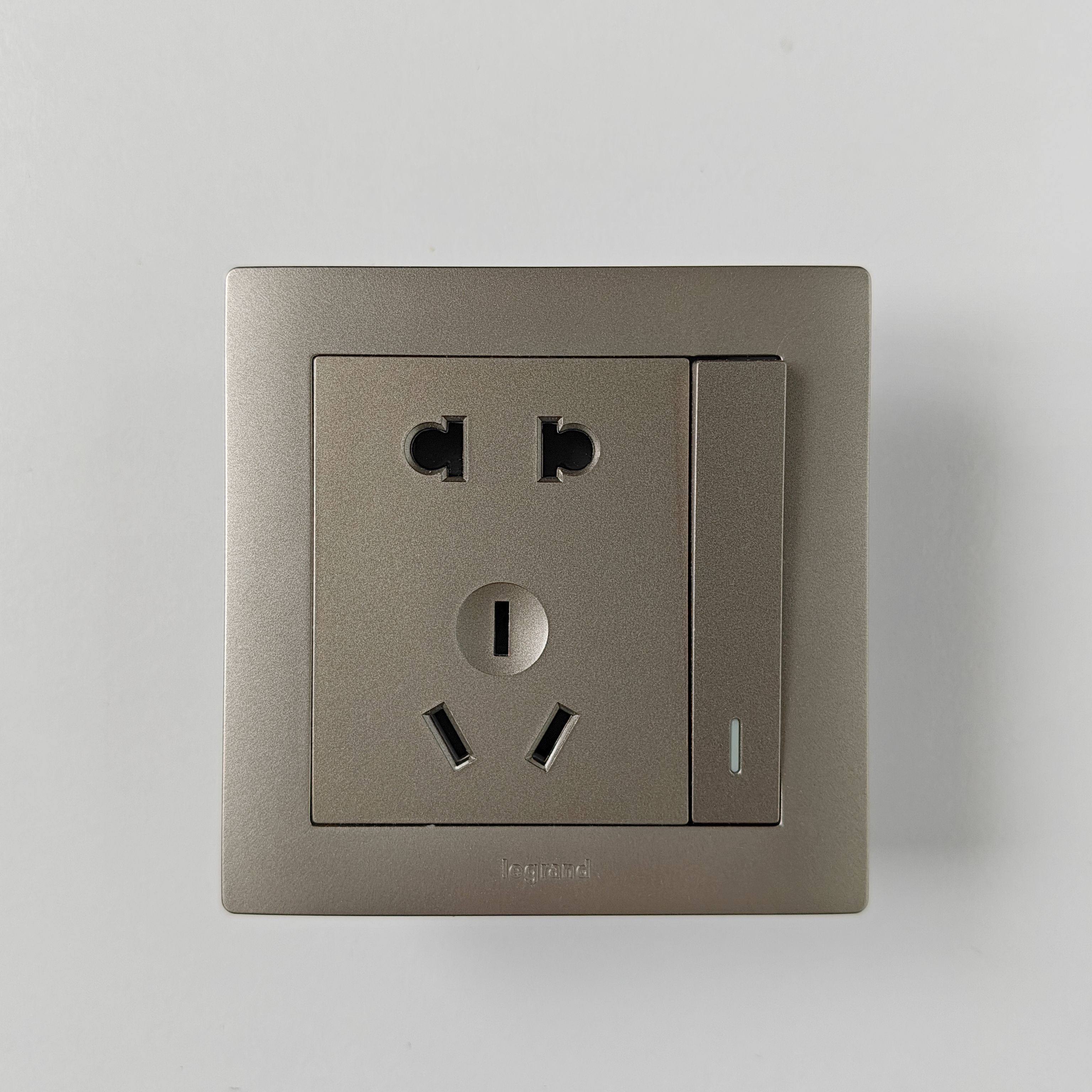 罗格朗开关插座面板逸景深砂银单控五孔暗装86型三孔16A空调插tcl