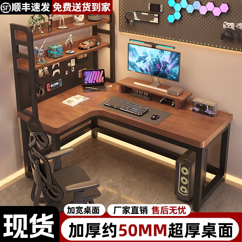50mm实木电脑桌台式家用书桌书架一体桌带洞洞板卧室电竞桌办公桌