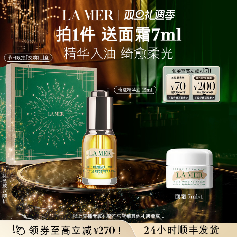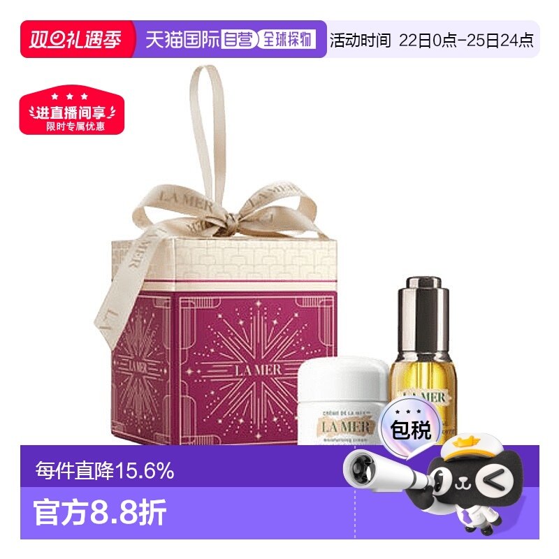 欧洲直邮LaMer海蓝之谜圣诞限定套装精华油15ml+奇迹面霜15ml正品