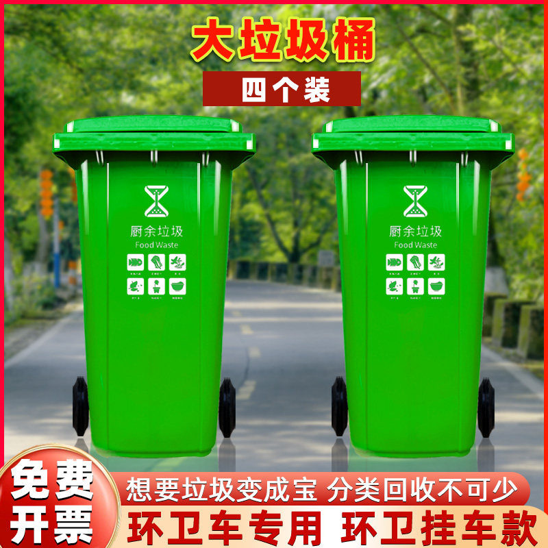 垃圾筒大容量240升商用室外物业环卫挂车120L厨房垃圾桶户外分类