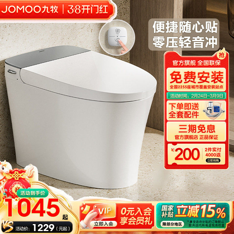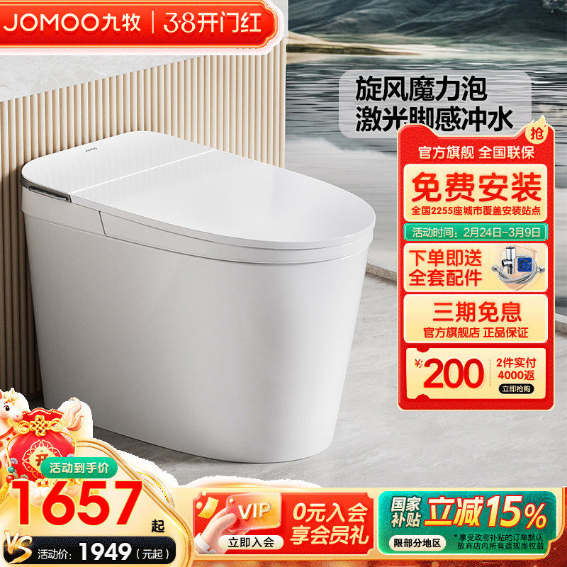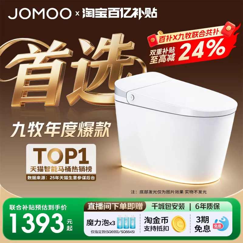 【至高补贴24%】九牧官方轻智能马桶零压脚感泡沫盾坐便器SQ6645