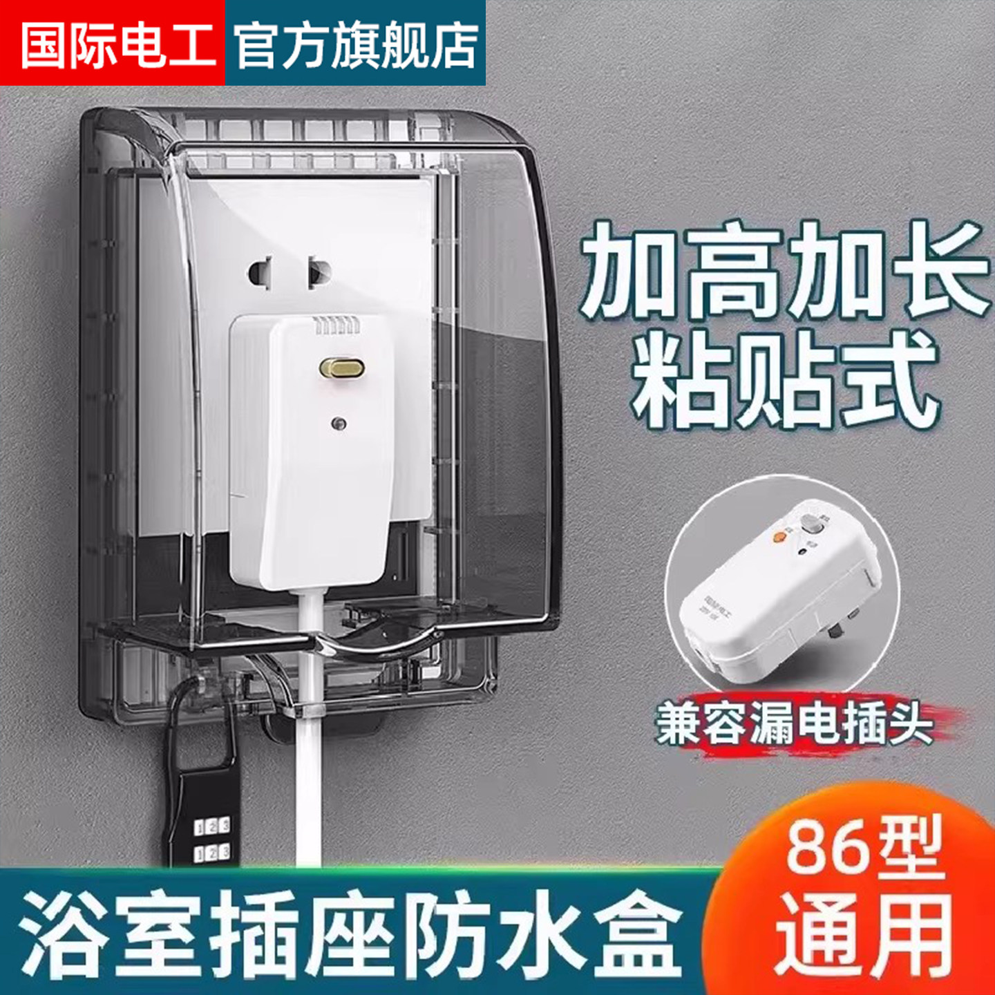 智能马桶插座防水罩加长漏电保护器防水盒浴室卫生间粘贴式防溅盒