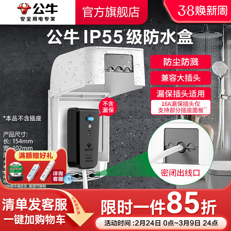 公牛旗舰插座热水器智能马桶86型防水溅浴室防溅盒防水盒户外保护