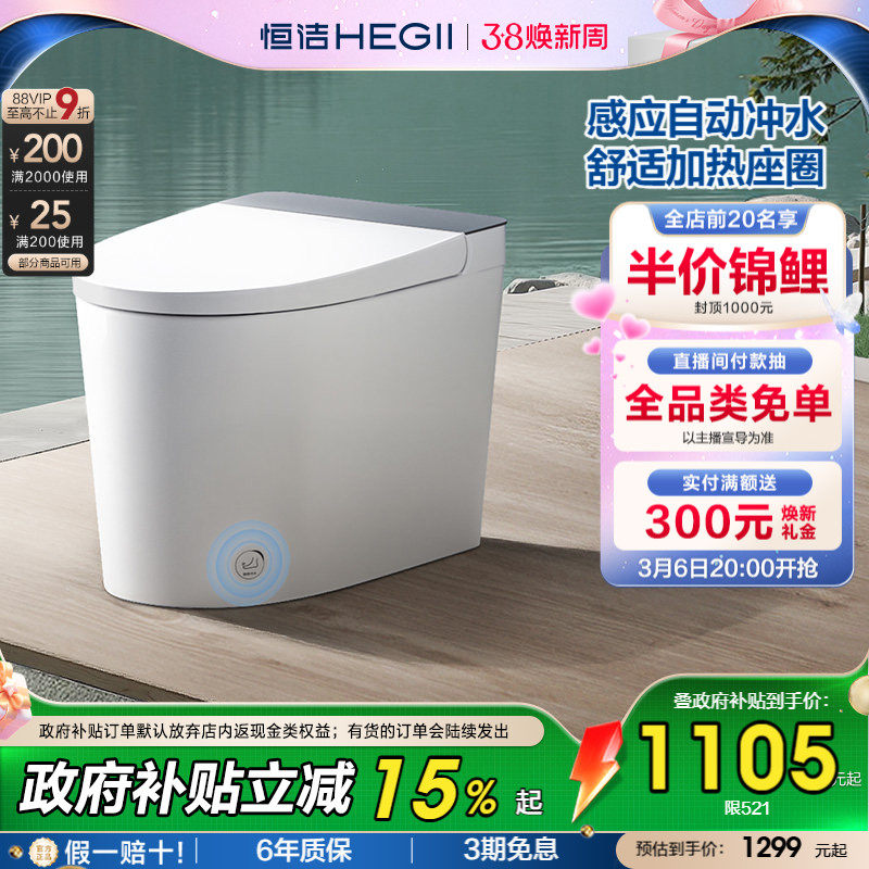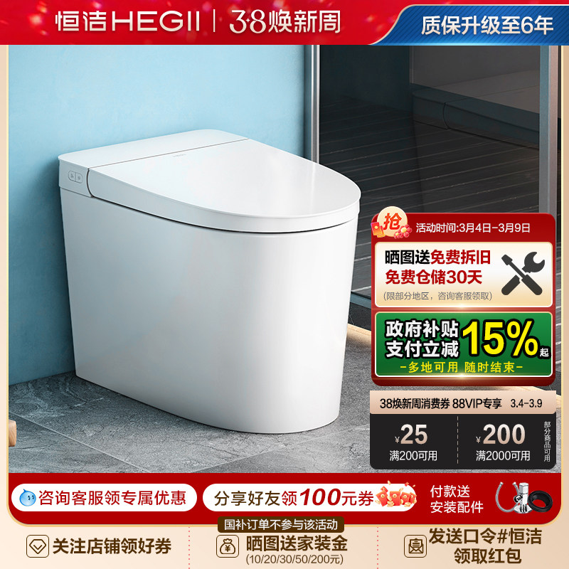 【政府补贴】恒洁轻智能马桶电动坐便器自动冲泡沫盾感应翻盖611C