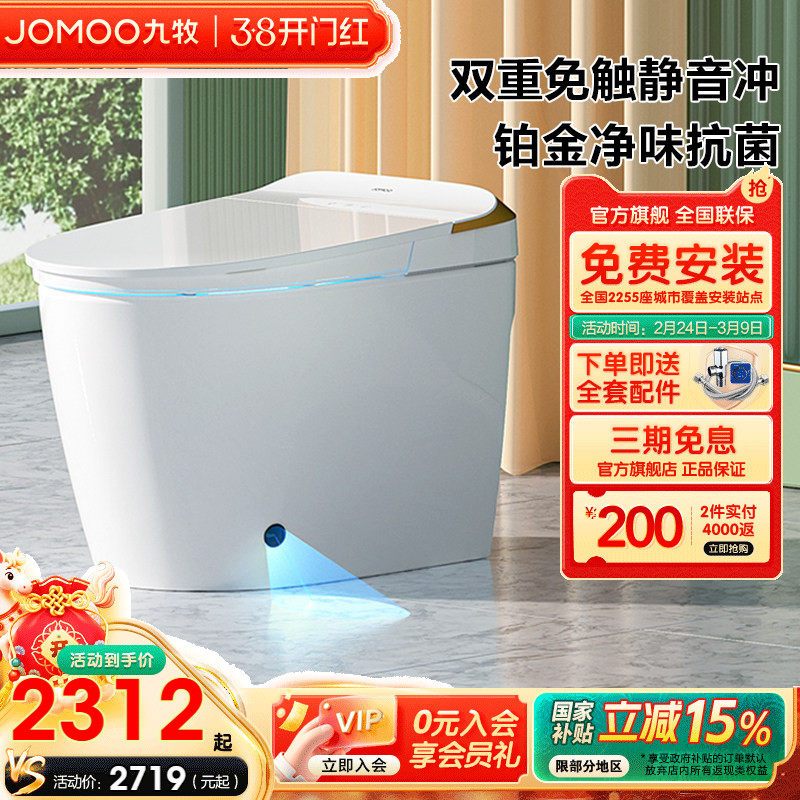 【政府补贴】九牧智能马桶脚感全自动抗菌零压静音冲坐便器S560I
