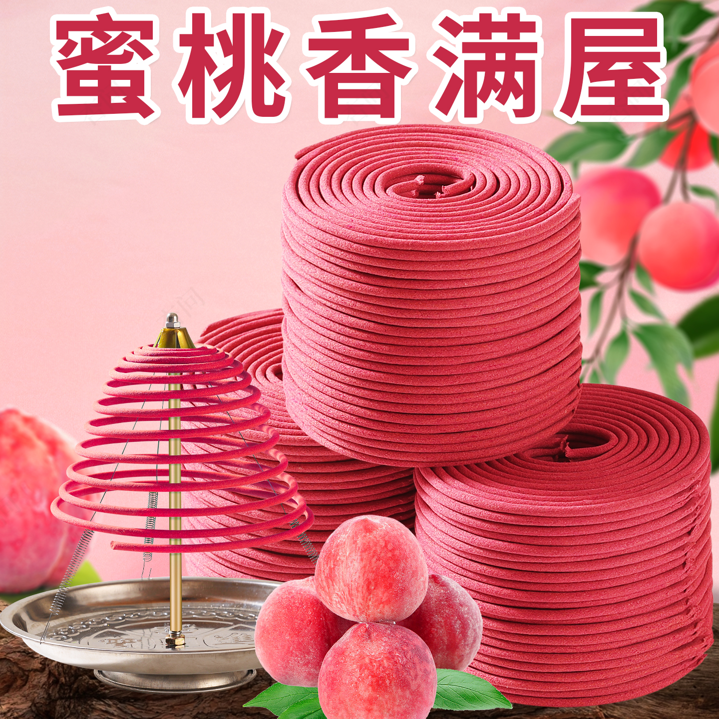 蜜桃盘香家用室内天然香薰房间持久留香清新空气净化卫生间除臭味