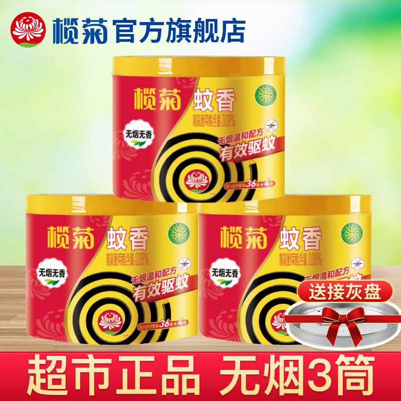 榄菊蚊香艾草清香型盘香40单圈*3桶家庭装长效驱蚊室内伊蚊灭蚊