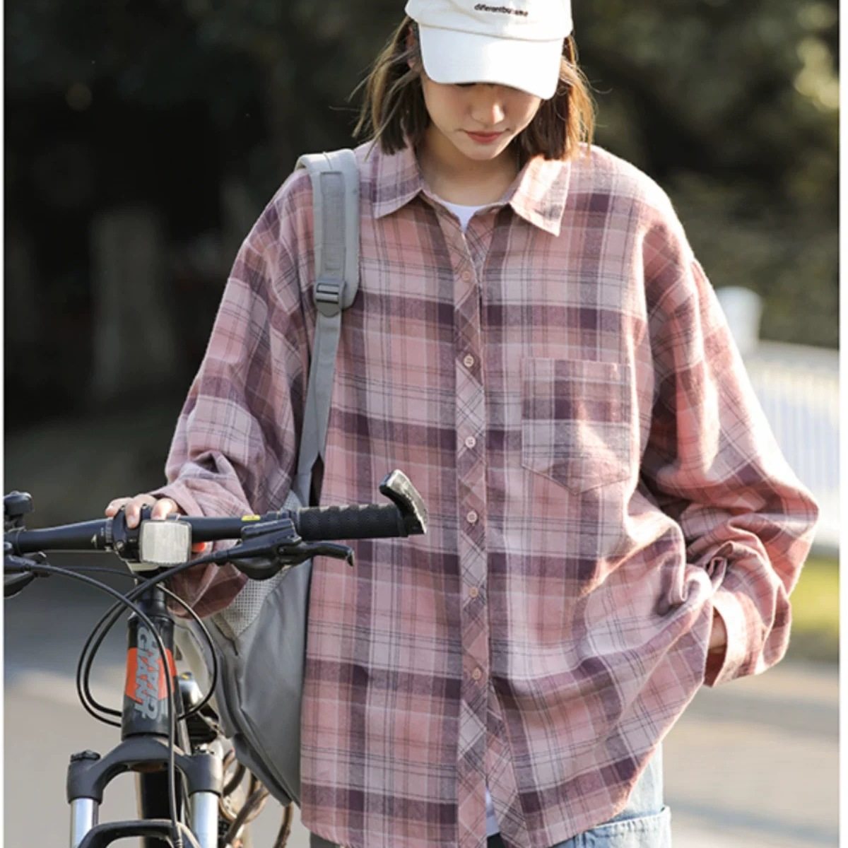 春夏秋新韩版宽松显瘦百搭小个子休闲减龄女格子衬衫学院风CS052