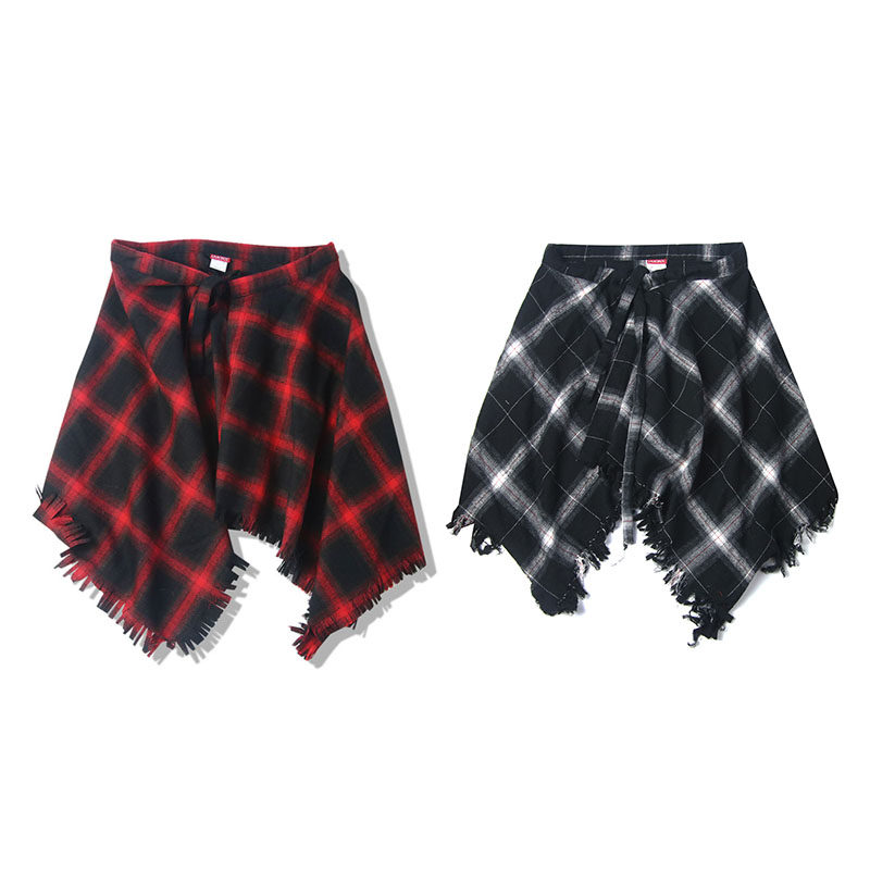 UUCSCC嘻哈高街潮牌水洗磨破男女格子衬衫裙摆围裙下摆腰部装饰