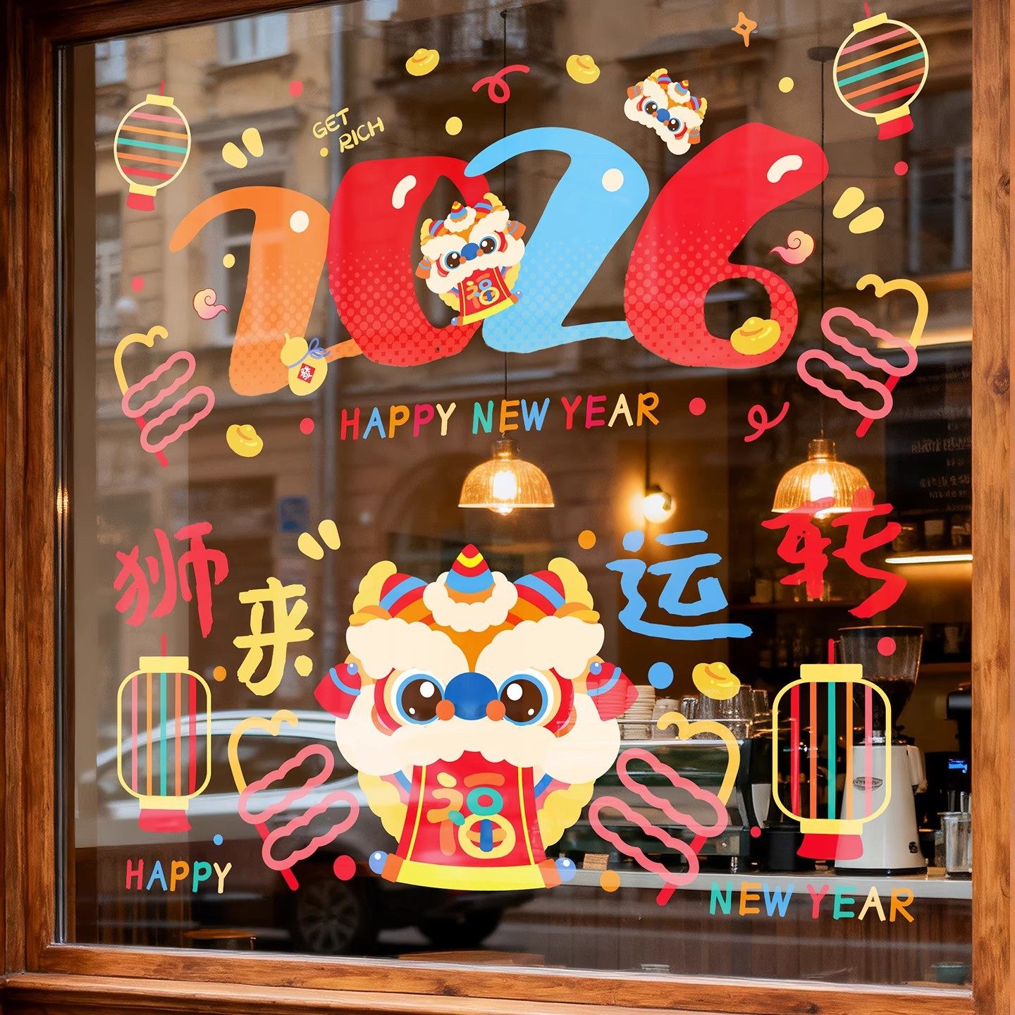 整张2026新年快乐玻璃门贴纸马年春节过年装饰窗花静电贴氛围布置