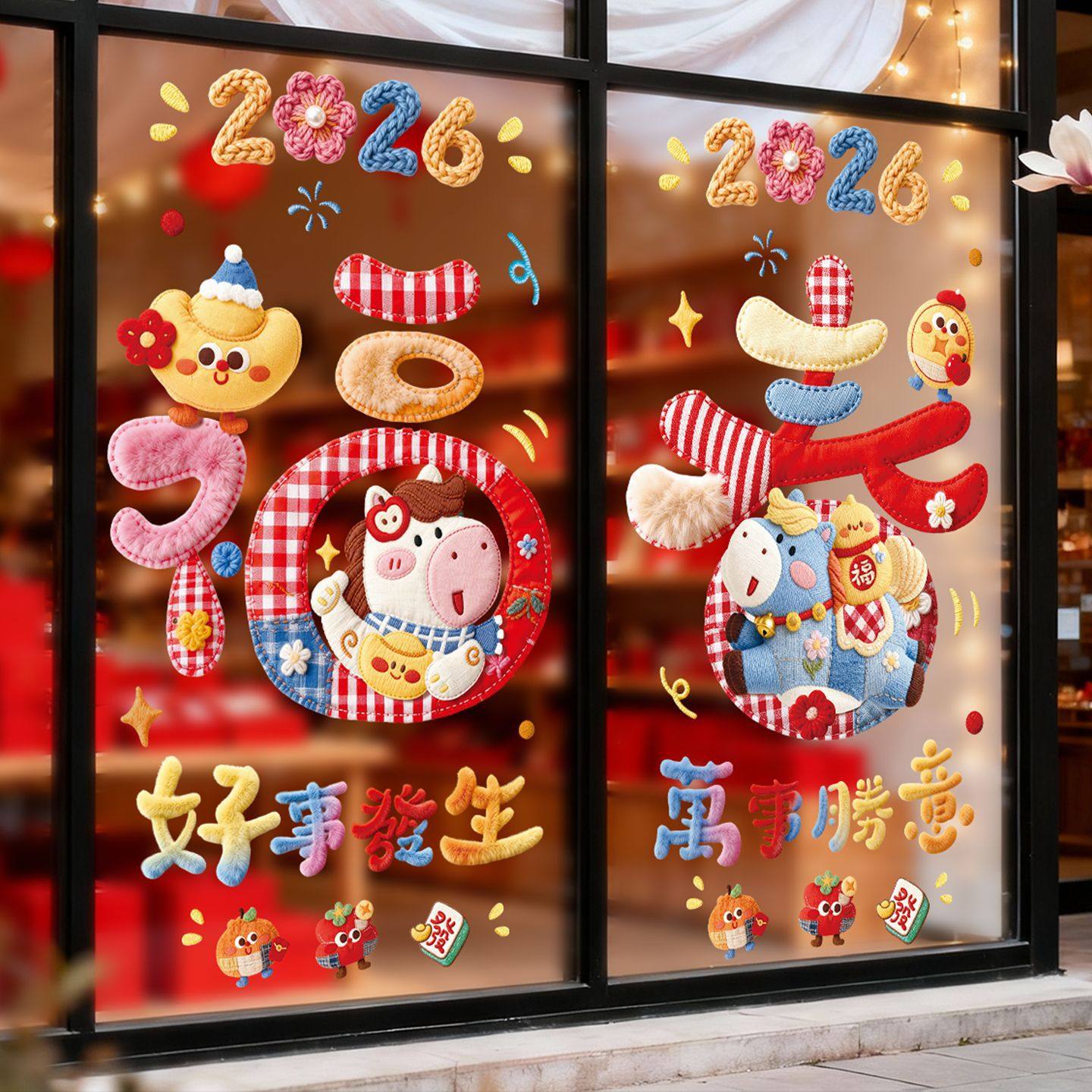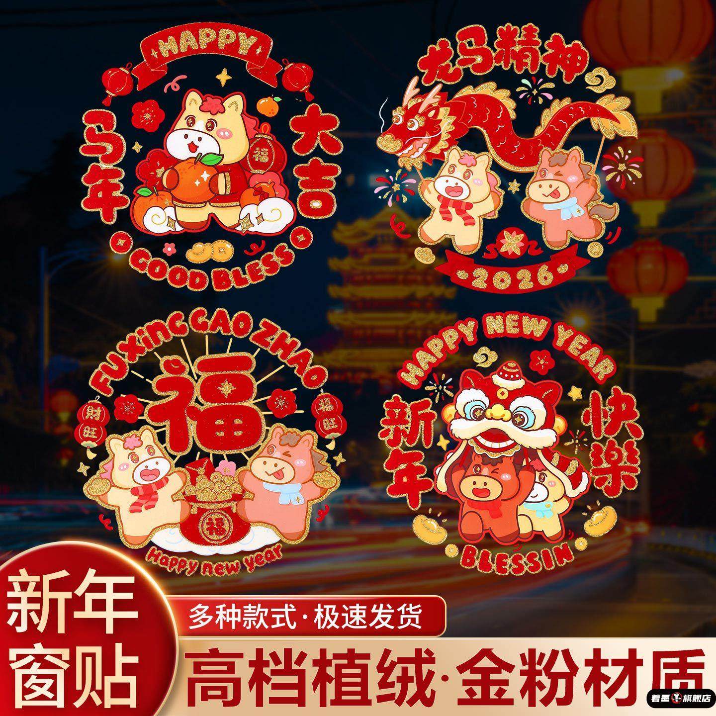 马年静电贴窗花2026新款新年玻璃窗贴纸福字门贴春节布置装饰用品