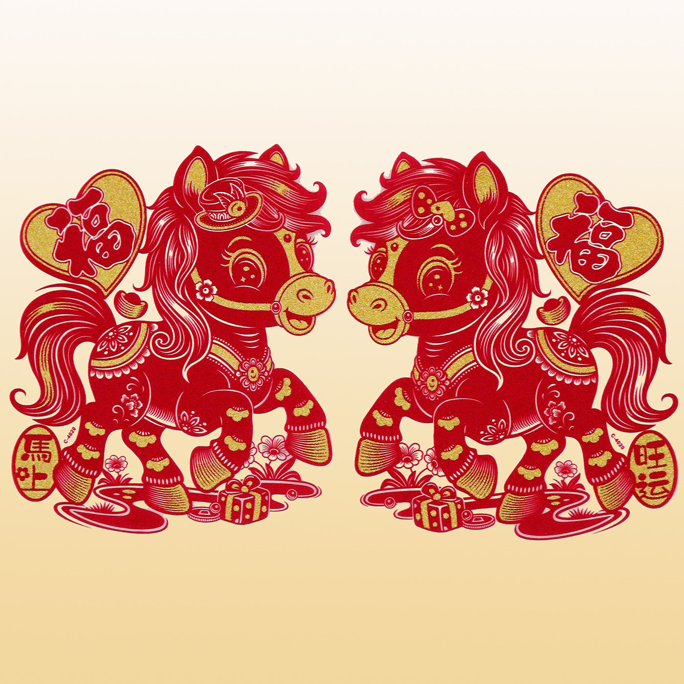 新品马年洒金植绒剪纸窗花福字纸2026年生肖马新年春节玻璃窗贴纸
