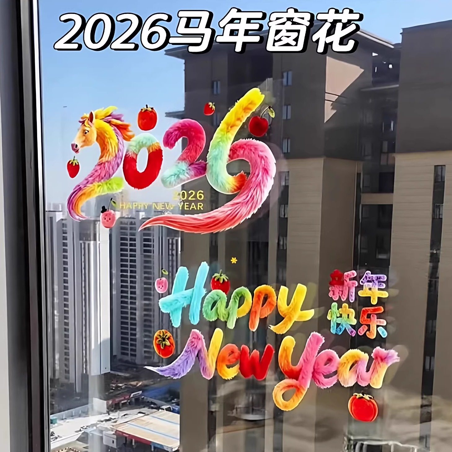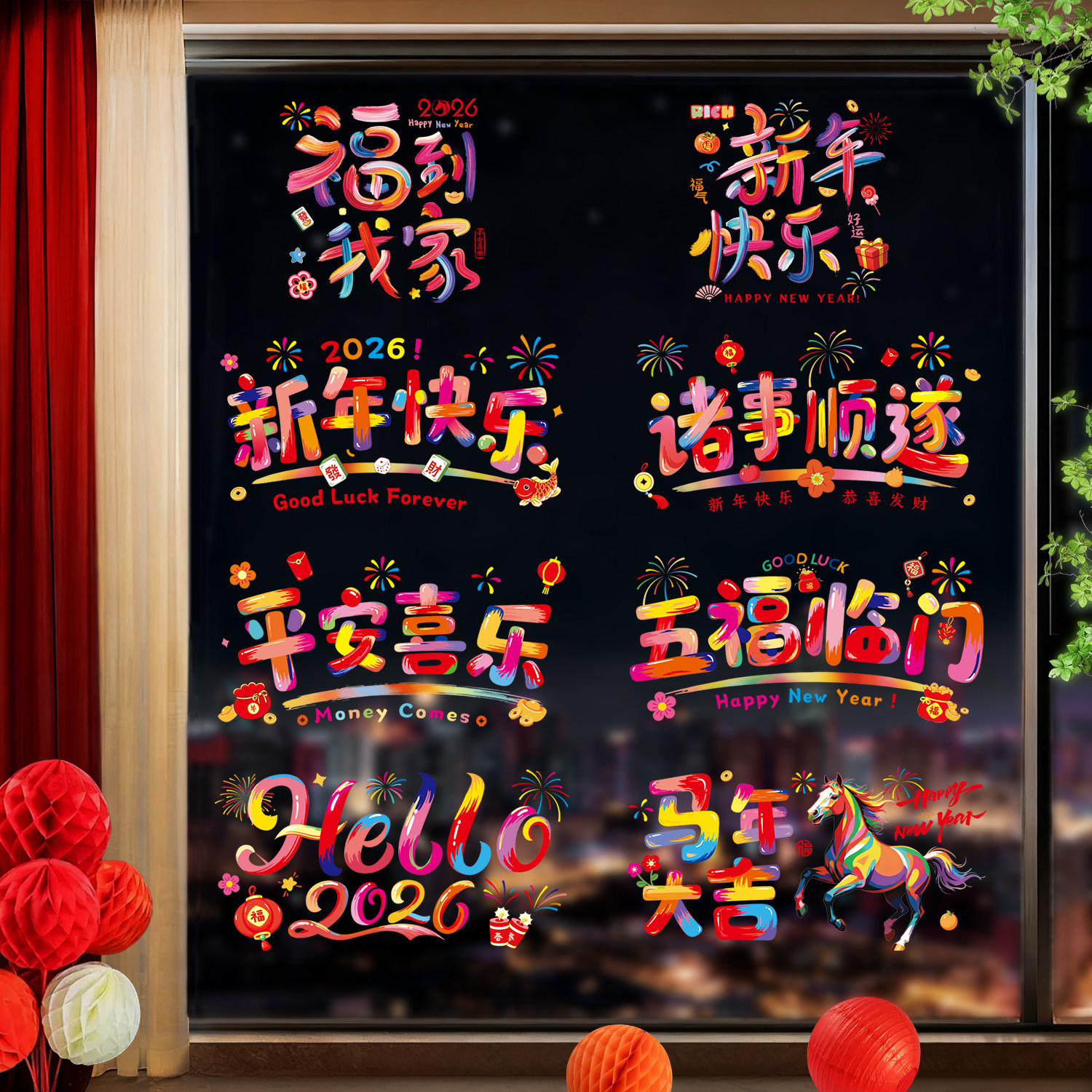 2026新年马年彩色窗花新款静电贴玻璃窗贴纸客厅布置新居装饰