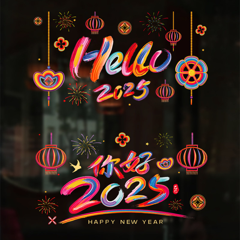 2026马年氛围布置烟花玻璃窗贴纸店铺商场咖啡店新年窗花静电贴纸