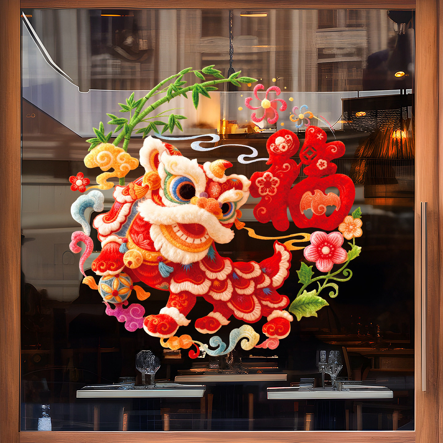 仿毛绒刺绣窗花贴马年2026新年静电贴过年生肖福字玻璃窗贴纸装饰