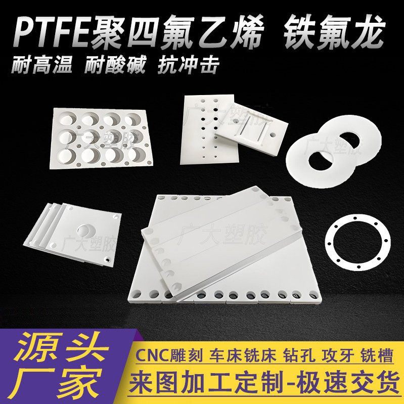 聚四氟乙烯板棒管PTFE板铁氟龙四氟塑料王耐高温耐磨定制车铣加工