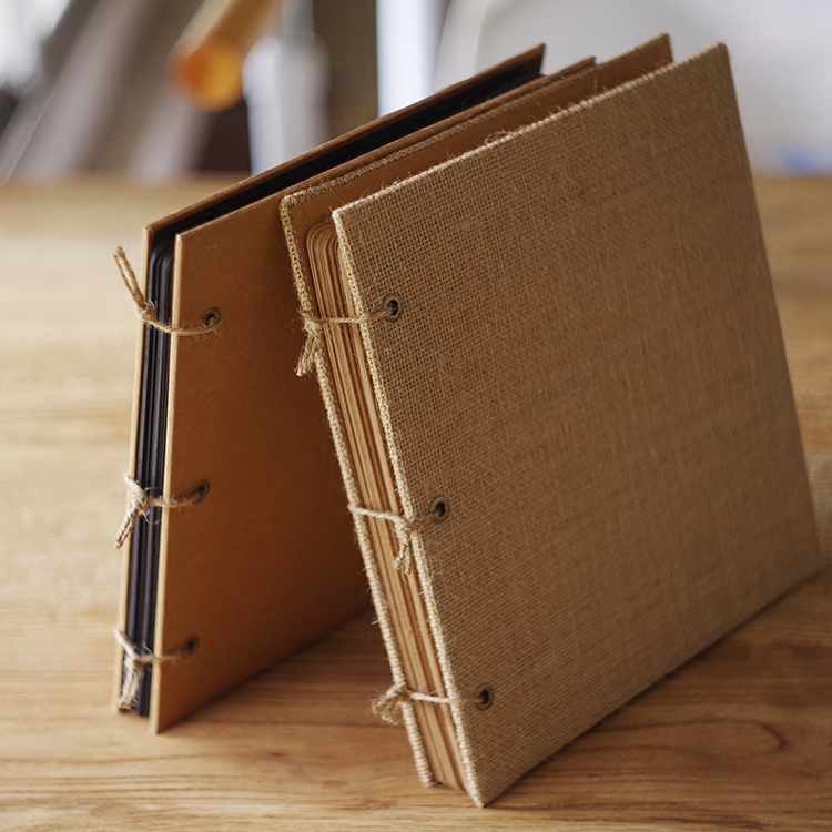 长方形横版复古粗麻布diy手工相册 多用途剪贴本 咖啡厅菜谱菜单