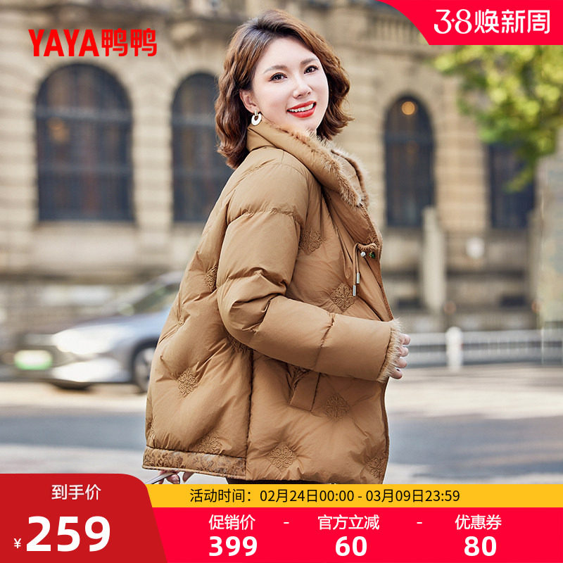 鸭鸭羽绒服女2025年冬季新款中老年短款时尚保暖气质妈妈装外套Y