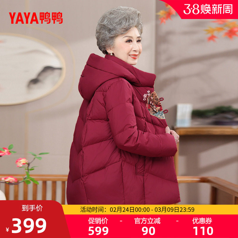 雅鹿羽绒服女短款妈妈装2025冬新款中老年加厚白鸭绒宽松连帽外套