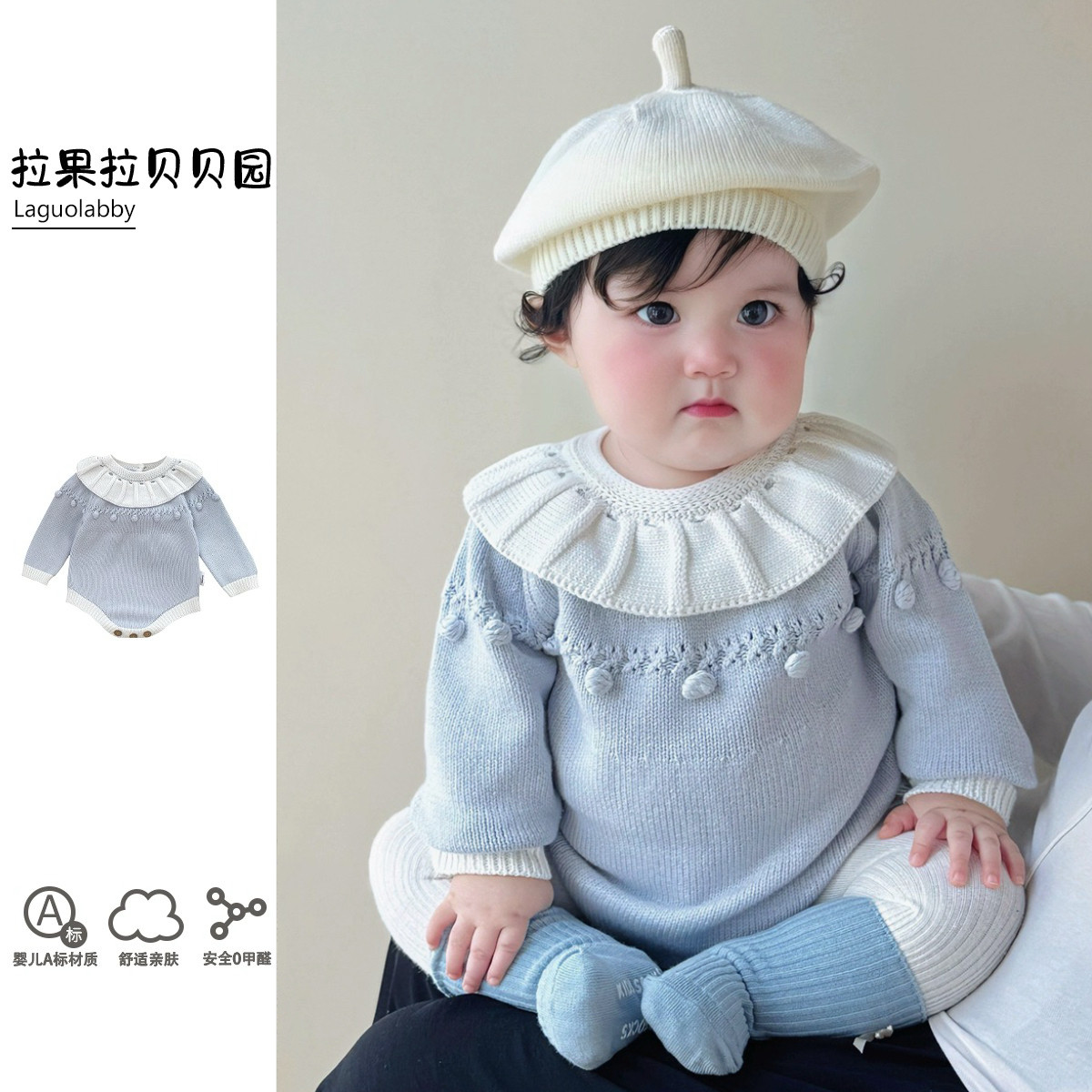 拉果拉贝贝园原创婴儿纯棉线毛衣包屁衣宝宝多巴胺公主针织连体衣
