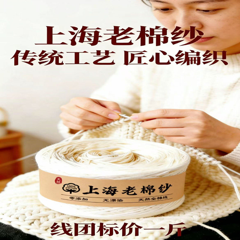 上海老棉纱宝宝毛线100%全棉纱线纯棉线婴儿钩针中细材料包手编
