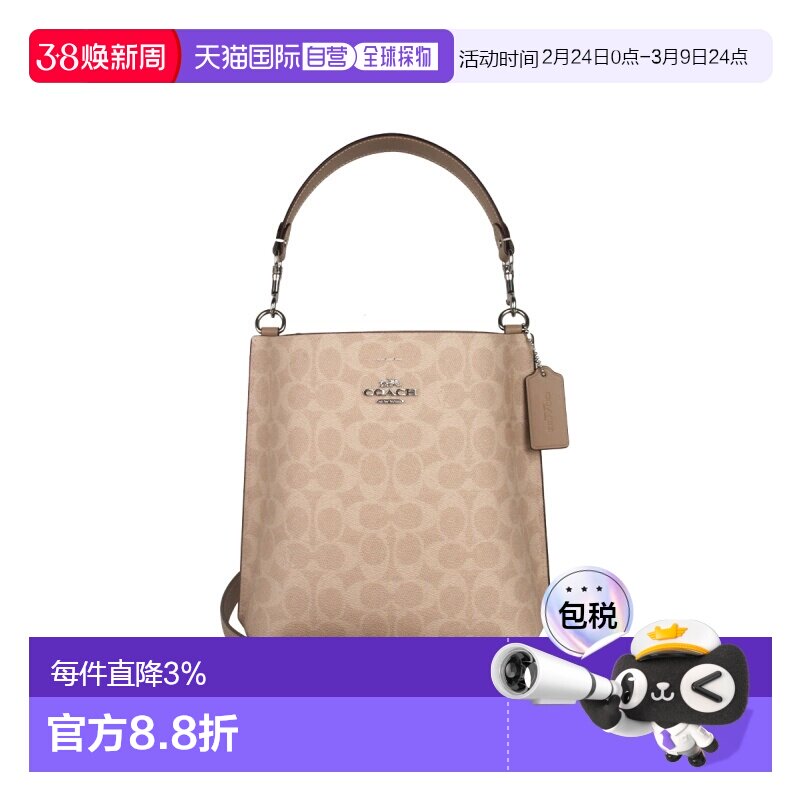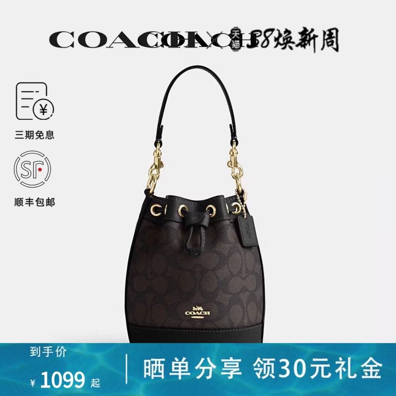 COACH/蔻驰女包 奥莱款女士PVC配皮单肩斜挎手提包小号水桶包包女