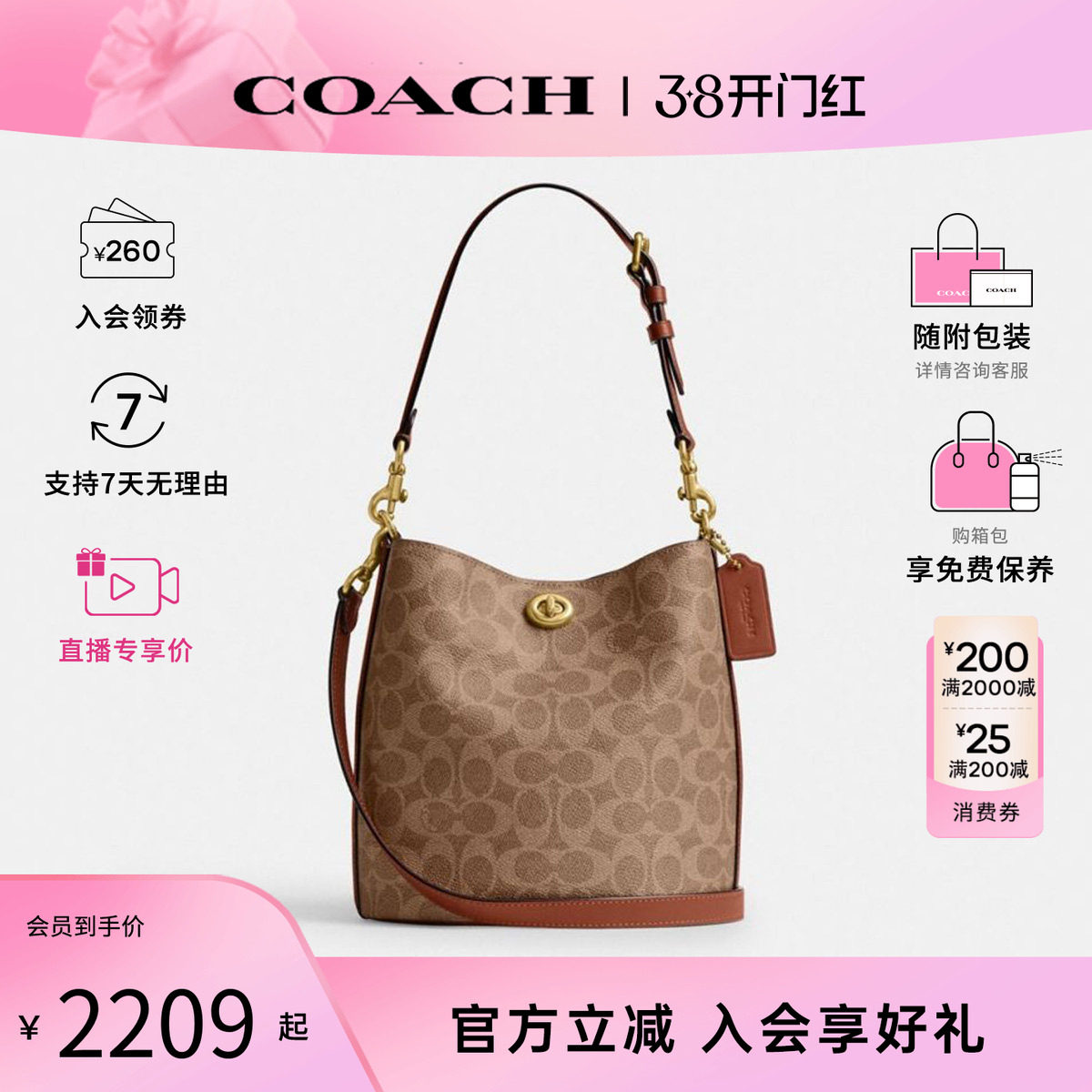【所有女生的衣橱直播间】COACH/蔻驰女包官方老花单肩手提托特包