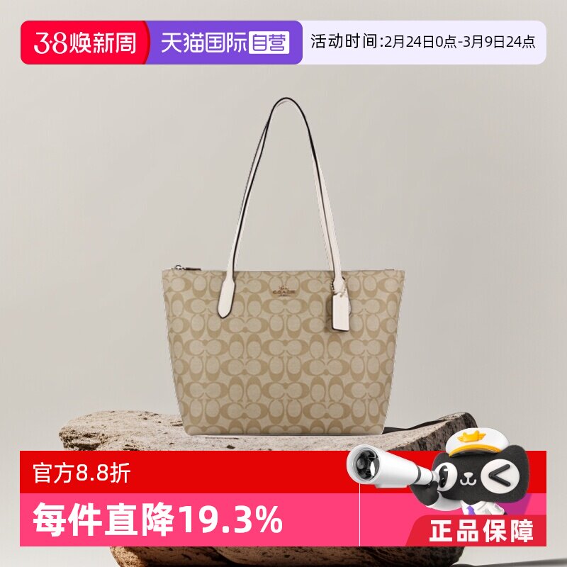 【自营】COACH/蔻驰拉链托特包单肩包购物袋妈咪包奢侈品女包