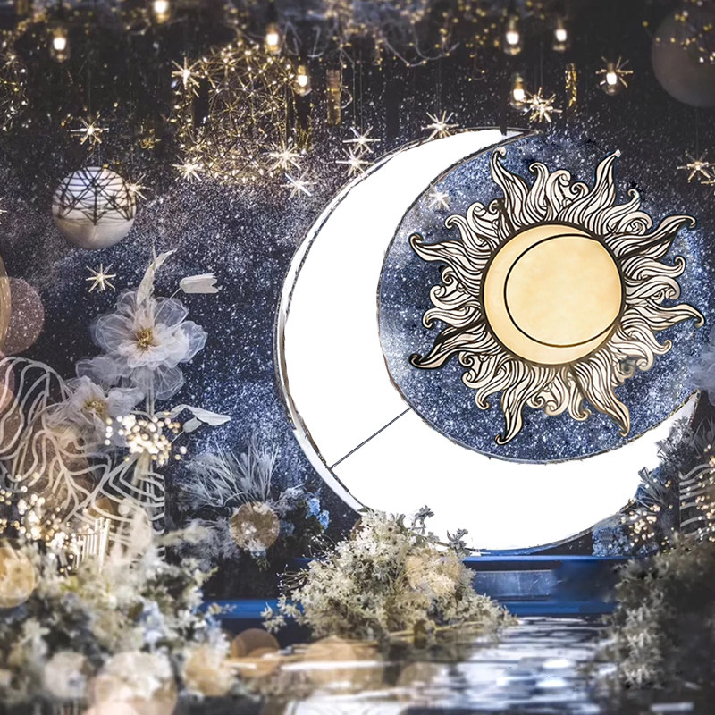婚庆发光月亮和太阳道具灯婚礼酒店现场舞台布置背景铁艺装饰摆u.