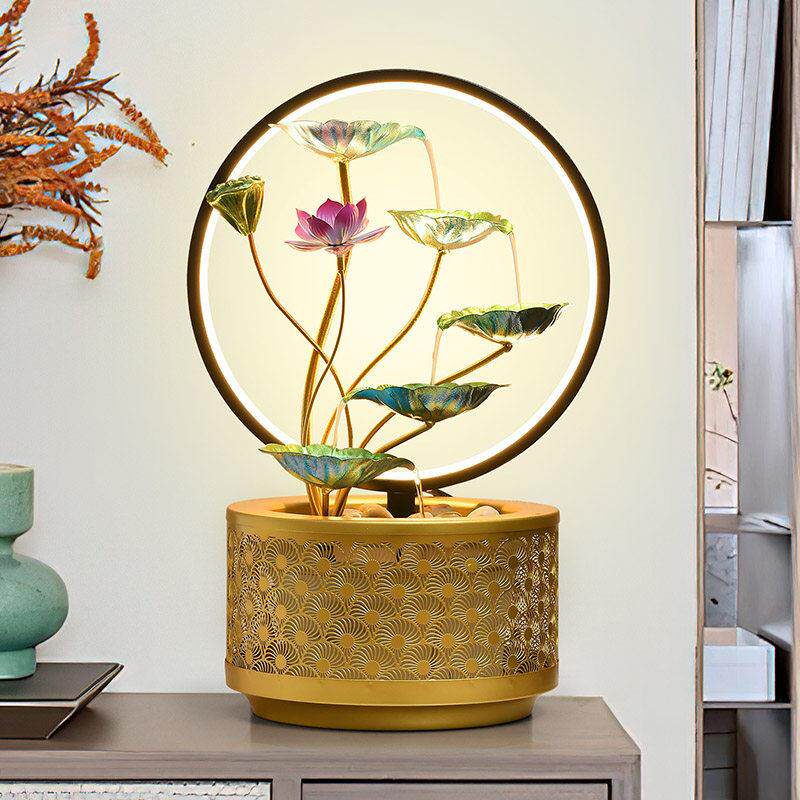 轻奢招财流水摆件客厅办公室茶桌循环水铁艺装饰景观乔迁新居礼品