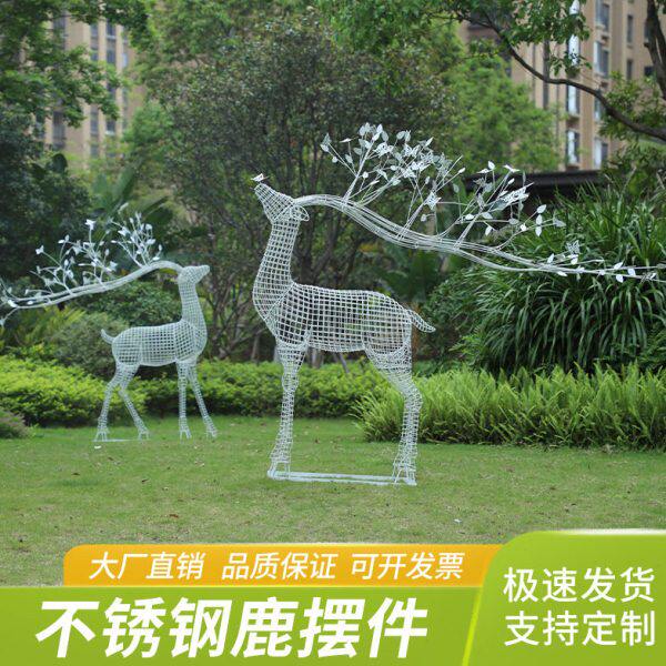 园林景观户外草坪小区动物抽象铁艺装饰不锈钢镂空梅花鹿雕塑摆件