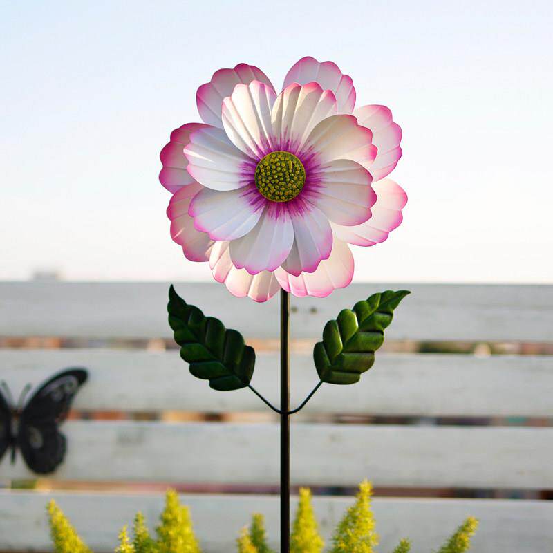 风景区田园户外观赏花朵款唯美粉色覆古牡丹花庭院铁艺装饰风车摆