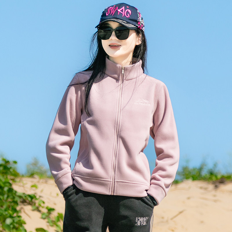 户外抓绒衣加绒上衣双面绒外套女立领开衫加厚保暖立领摇粒绒卫衣