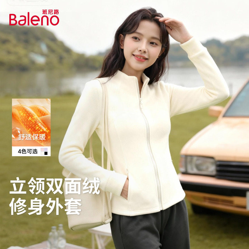 班尼路立领双面绒外套女款2025秋冬新款冲锋衣内搭保暖立领上衣Q