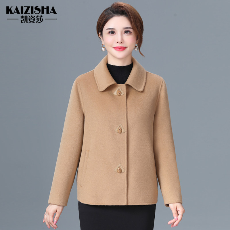高档双面绒外套女短款显瘦修身秋冬中老年女妈妈装羊毛呢外套上衣