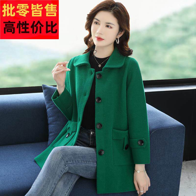 短款双面绒外套女显瘦修身秋冬上衣羊毛呢外套时尚洋气妈妈装呢子