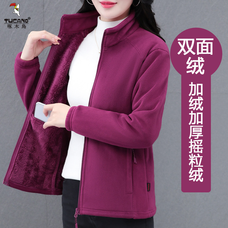 啄木鸟休闲保暖双面绒外套女2025冬季新款奥利绒加绒加厚抓绒上衣