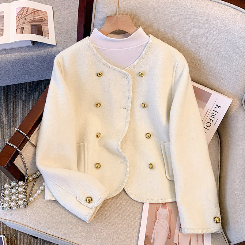 双面绒外套女短款高档新款小个子赫本风高端羊毛双面呢上衣大衣女