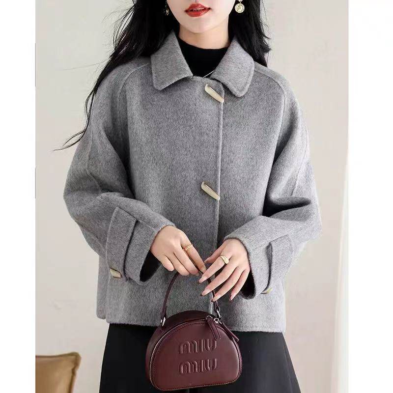 双面呢短款羊毛大衣双面绒外套女2025秋冬新款小个子牛角扣上衣