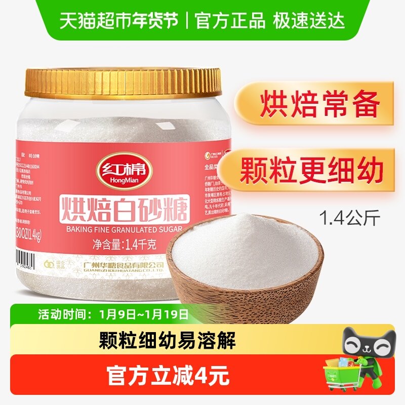 【包邮】红棉商用烘焙细砂糖1.4kg甜点淡奶油蛋糕烘焙原料白砂糖