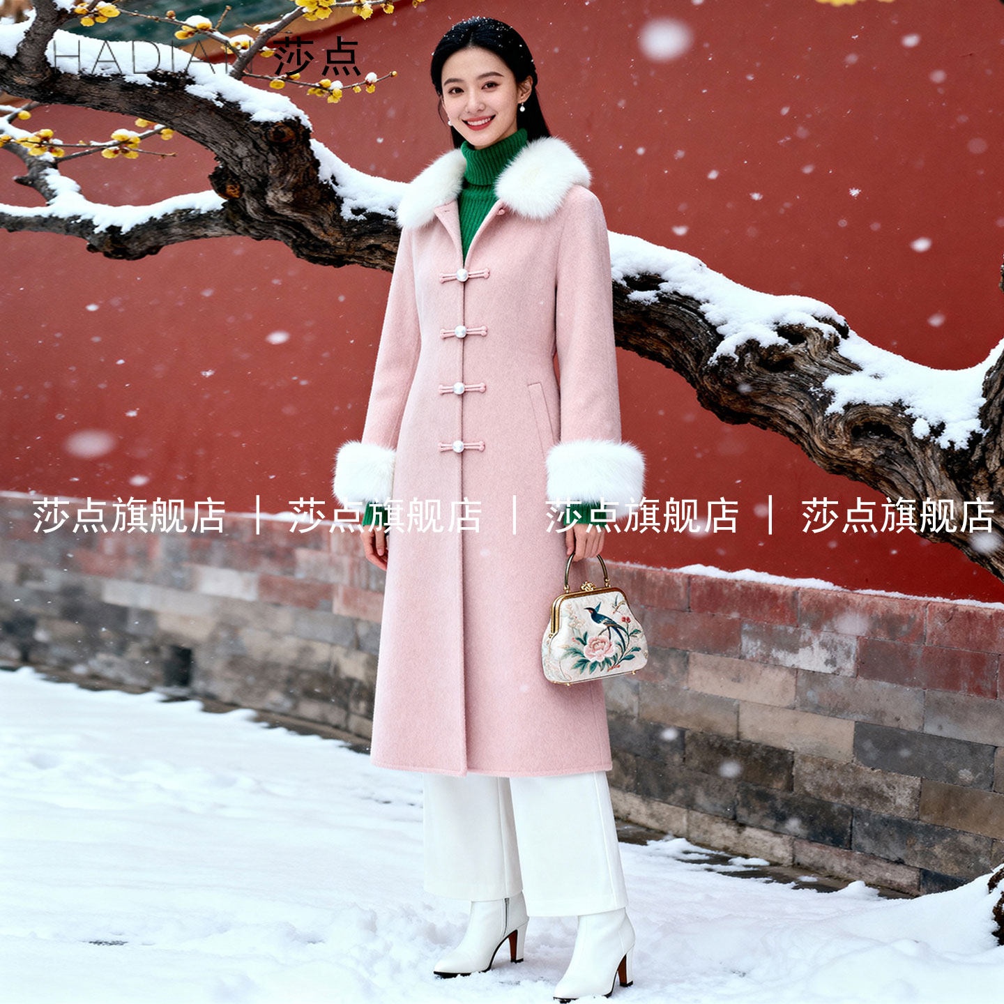 2025新款粉色新中式毛呢外套女冬中长款加厚过膝呢子大衣高级感