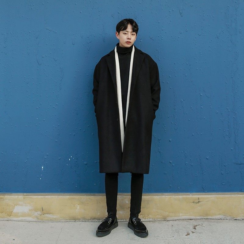w2x男款毛呢外套帅气秋冬季加厚过膝呢子大衣保暖男士风衣西装男