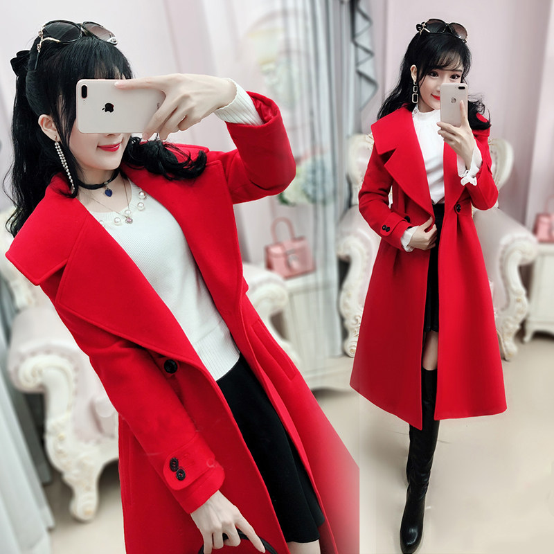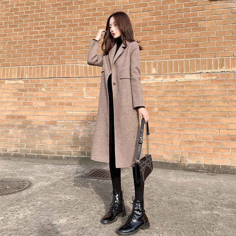气质名媛网红爆款复古长款纯色大衣过膝呢子大衣修身显瘦女神时尚