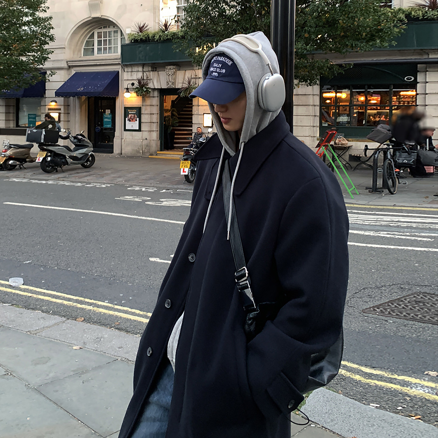 IDDB 秋冬季中长款过膝呢子大衣男士宽松潮流垫肩小众金属圈设计