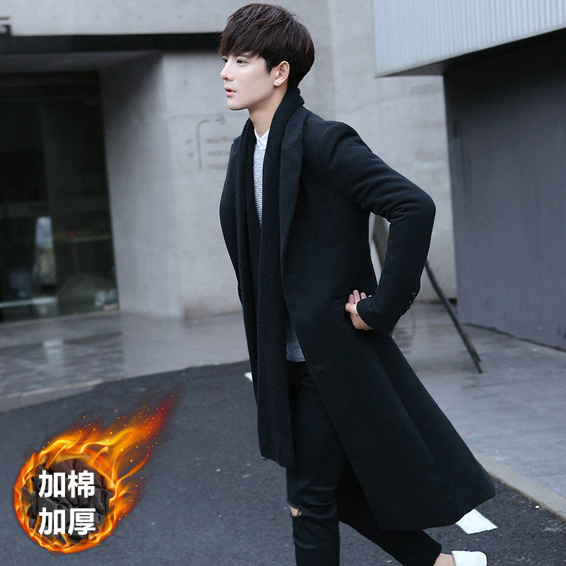 秋冬装时尚潮男超长款毛呢风衣学生帅气过膝呢子大衣韩版修身外套