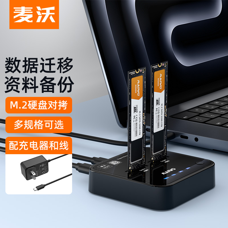 麦沃固态硬盘拷贝机双盘位SATA/NVMe协议读写克隆外接盒K3016