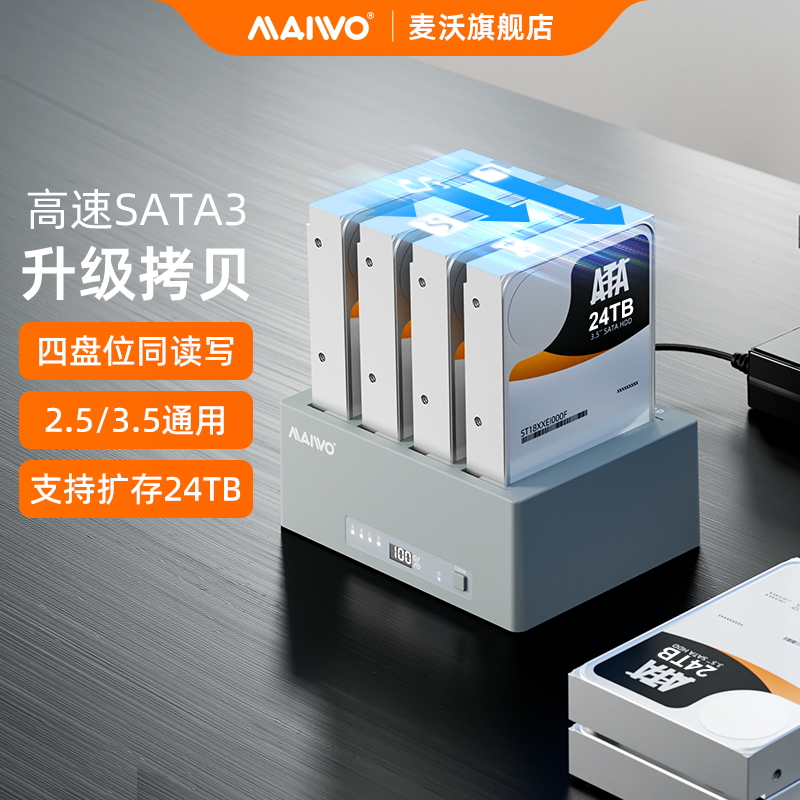 麦沃硬盘盒四盘位数显克隆拷贝机3.0资料复制扩容硬盘座 K3094A