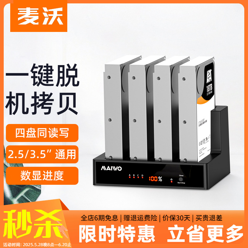 麦沃 四盘位数显克隆拷贝机2.5/3.5英寸SATA接口扩容硬盘座K3094A